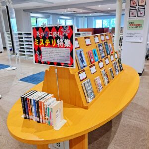 「商大図書館 夏の100冊!2025」展示の際のアンケート「あなたが読みたい本はどれ?」で、いちばん得票数が多かった「ミステリ」の展示を行います。