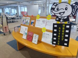 映像研究会サークルの学生たちがおすすめの本を14冊紹介してくれました。今回で2回目となります。「脚本部門」「出演部門」「編集部門」「演出部門」「その他」のグループに分け、それぞれ本を選定しています。ポップも学生が作ってくれているので、ぜひ見てみてください。 展示リストブクログ 展示期間   令和8年4月1日~ 1カ月半程度